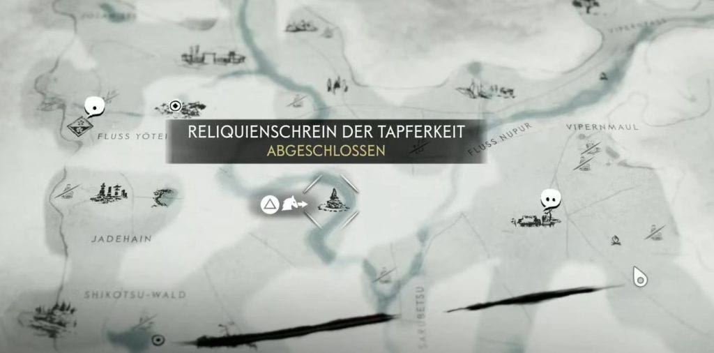 Beim Reliquienschrein musst Du ein kleines Rätsel lösen: Drei Füchse müssen zum Berg Yōtei ausgerichtet werden. Sobald das geschafft ist, bekommst Du die Belohnung direkt am Schrein.