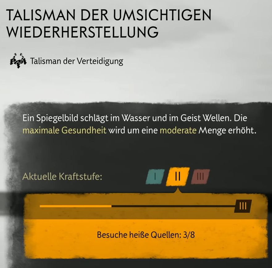Zusätzlich kannst Du den Talisman verbessern, indem Du weitere heiße Quellen besuchst.