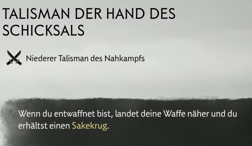 Wenn Du entwaffnet wirst, lässt ein Gegner eine Waffe + Sakekrug fallen.