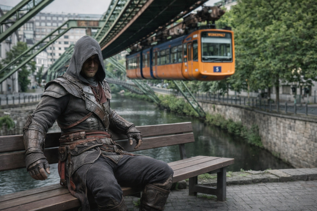 Nach Japan, Bagdad und Griechenland geht es angeblich in die bislang gefährlichste offene Welt der Seriengeschichte: Assassin’s Wuppertal-Elberfeld. Dort wartet eine emotionale Hauptquest rund um die letzte freie Sitzbank in der Innenstadt.