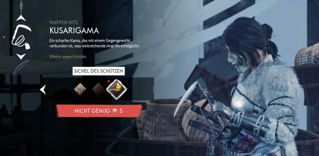 Und natürlich: Alles nur gegen die neue Geisterblumen-Währung. Diese bekommst du durch fast jede Aktivität – sei es Mission, Quelle oder Kopfgeld.