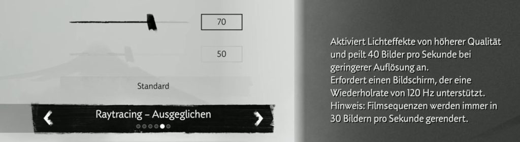 • Ziel sind 40 FPS, was ein Mittelweg zwischen Qualitätsmodus (30 FPS) und Leistungsmodus (60 FPS) ist.