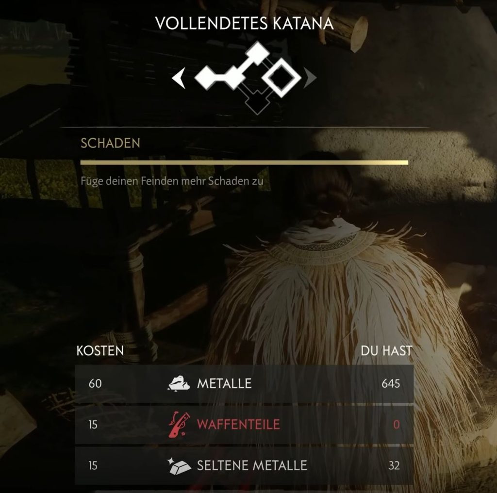 Um Deine Waffen sinnvoll aufzurüsten, brauchst Du folgende Ressourcen: