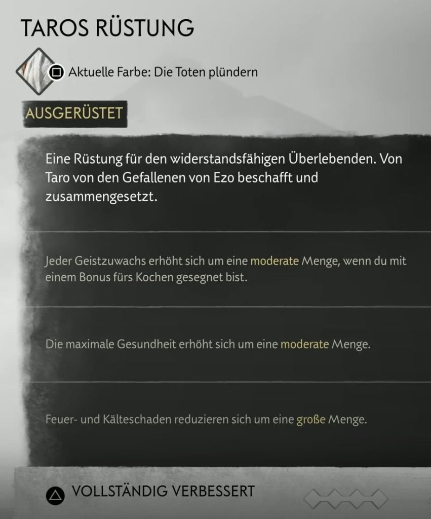 Gerade zu Beginn super nützlich, da Feuer- und Kälteeffekte in Ishikari-Ebene und Teshio-Kamm oft vorkommen.